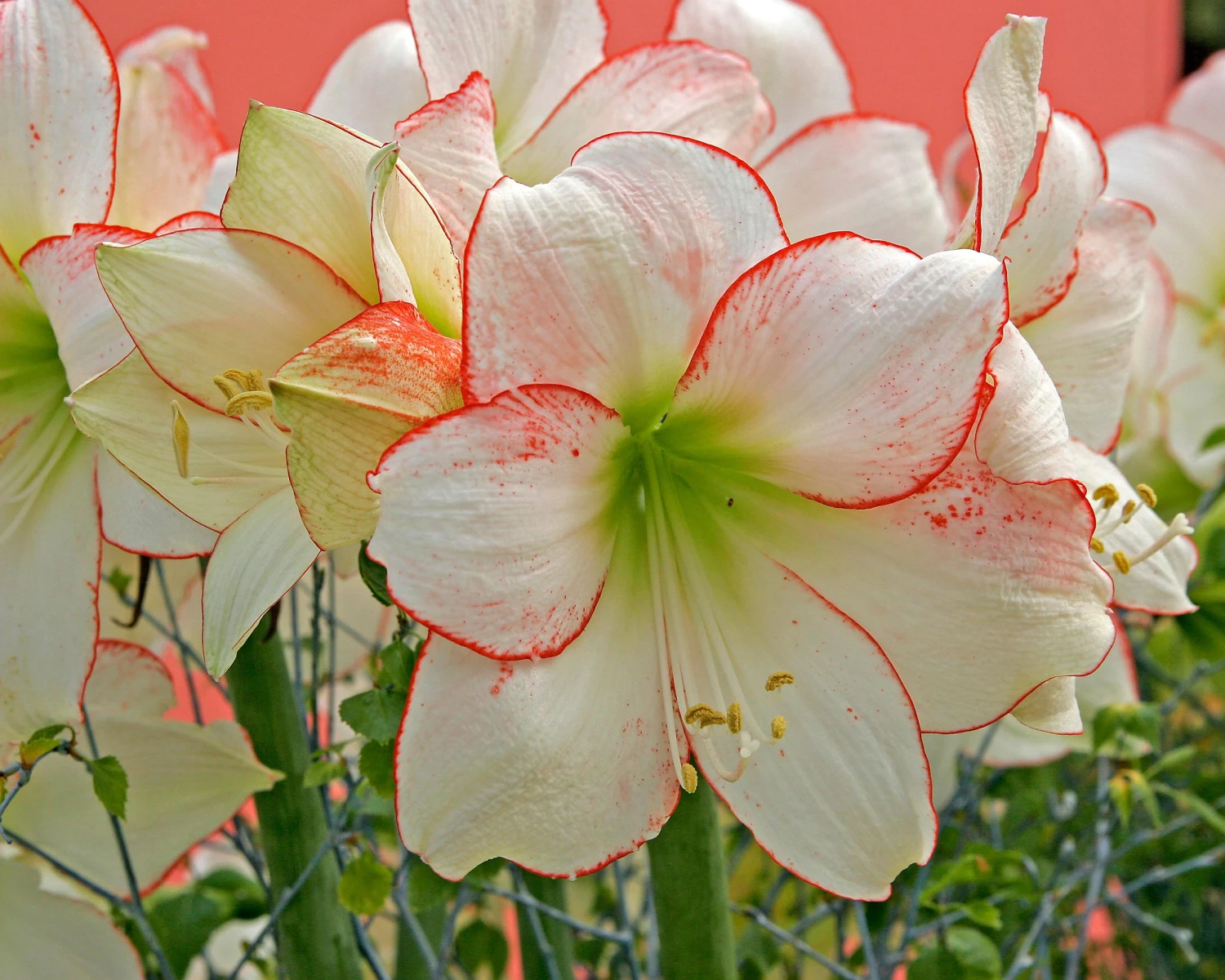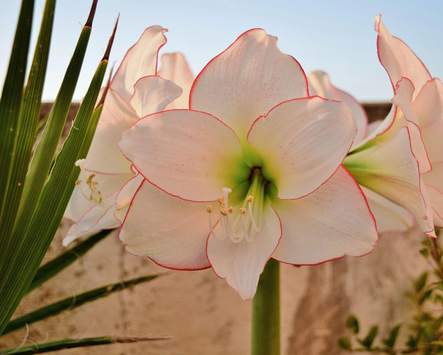Amaryllis ‘Picotee’ is ideal for providing that indoor floral hit at a time when cut flowers are in short supply. What’s more, it is spectacularly easy to grow! Pot bulbs in autumn for flowers 7-10 weeks later, using a tight-fitting pot (no more than around 1cm space between the bulb and the edge of the pot) filled with a well-draining, gritty mix. Make sure the top third of your bulb is above the surface of the compost (to avoid rotting of the growing point). Keep well-watered and apply a fortnightly liquid feed throughout the growing season. One Hippeastrum ‘Picotee’ in a pot is lovely; three is spectacular!Â