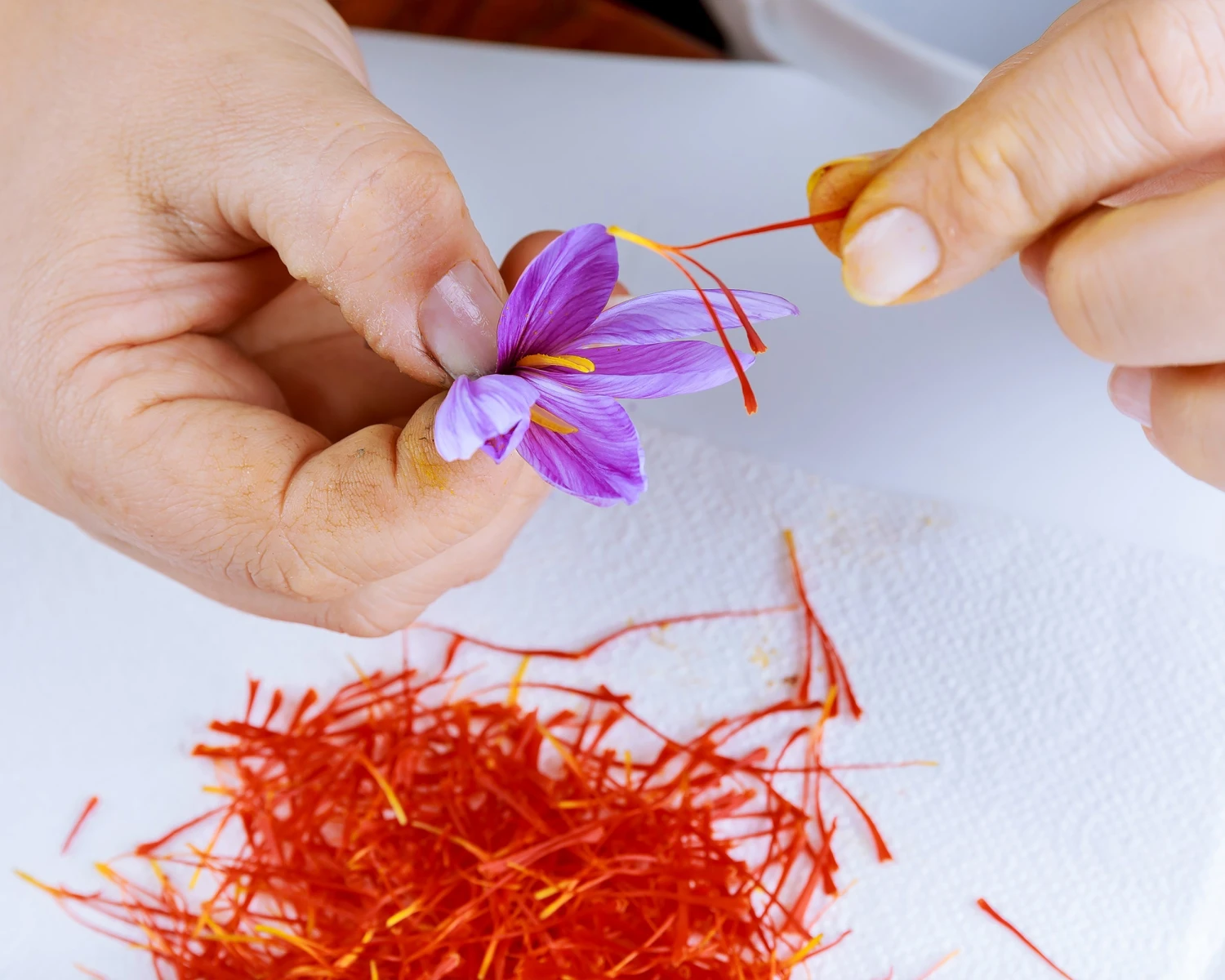 “It takes around a 150 of these small Crocus sativus plants (and some careful harvesting and drying) to nett about one gram of the saffron spice.”