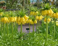 Yellow imperial fritillaries don’t have to demand to be noticed. They simply will be unmissable. Towering above their smaller sisters, these yellow crown imperials could easily steal the show, if they didn’t make such a great background for other floral performances courtesy of your other spring flowering bulbs. Combine regal Fritillaria imperialis ‘Lutea’ with Fritillaria imperialis ‘Rubra Maxima’ for a flaming display of gold and red, or use it on its own. Mass it as a background planting or dot it around among less statuesque flowering plants. No matter what you do, these golden beauties will astound and delight you and visitors to your garden.