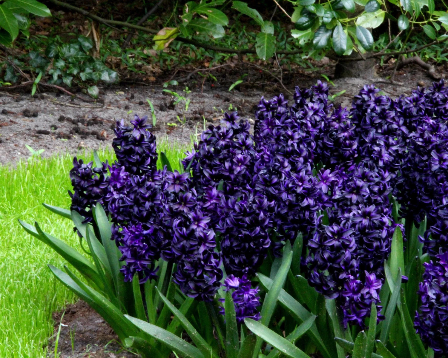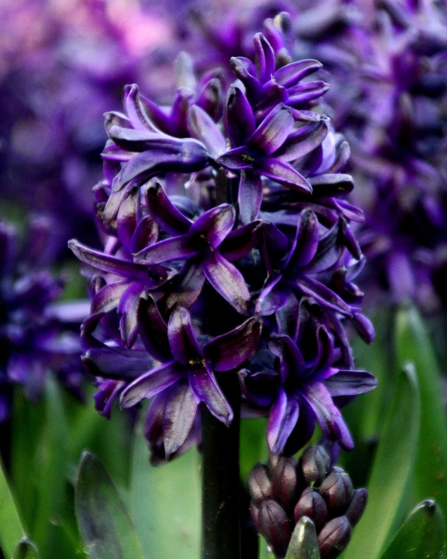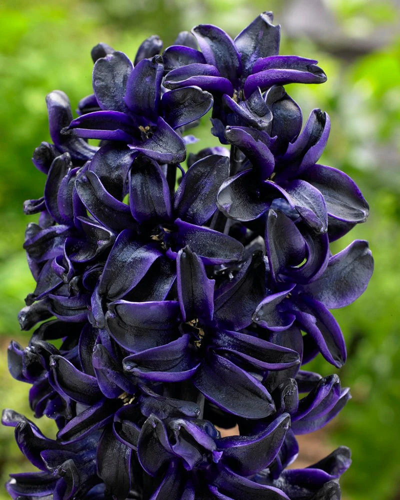 As the florets of Hyacinth ‘Dark Dimension’ begin to crack you notice it will be more like dark purple than being black. However, as the flower matures during the season like you can see on the different flowering stages on the images Hyacinth ‘Dark Dimension’ will end up being black!