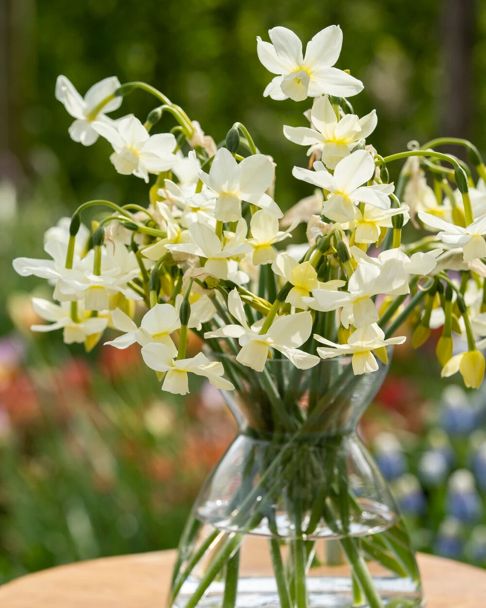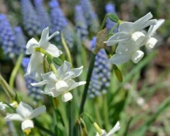 Light up a dappled shade area with a twinkling display of Narcissus ‘Petrel’. Producing between 3-5 starry flowers per stem, this triandrus daffodil throws out an enthusiastic and eye-catching display which you can look forward to seeing during spring every year. The gleaming white petals of Narcissus triandrus ‘Petrel’ are reflexed, which gives them a carefree windswept appearance, and a small white cup in the centre makes each bloom dainty and elegant. To top it all off, this Narcissus has a fantastic, sweet fragrance.