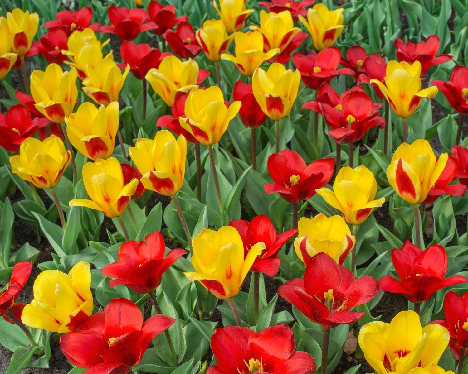 Thoughts of warm curries and spicy aromas seem to touch the senses as one gazes upon the Stresa tulip – and you will gaze! The award winning Tulip ‘Stresa’ is a sight to behold. Its flower petals are vibrant Indian yellow accompanied by a striking chilli red: spicy indeed! As the morning sun rises these blooms will warm your heart as they open up their bright and cheerful petals.