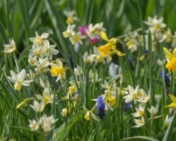 Tulipa turkestanica is one of the best tulips for an informal, wild or naturalistic look to your garden. Regarded as a leading tulip species for naturalising: just throw a handful of bulbs out over the grass and plant them where they fall. Leave plants in the ground for several years, and they will gradually form a naturalised swathe of early spring colour. Tulipa turkestanica produces attractive grey-green leaves, and beautiful pointy, elegant flowers of ivory white, with a deep yellow and orange base, flushed reddish-green on the outside. Flowers are followed by seedpods that are almost as pretty! Many modern tulip cultivars have just one bloom per stem, but this species is multi-flowered, with as many as 12 blooms per plant!
